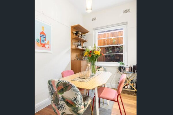 Step into one of Elwood’s finest one-bedroom residences, where timeless Art Deco character meets modern refinement. Quietly positioned at the rear of a boutique block, this renovated apartment offers truly grand proportions that set it apart from the standard one-bedroom home. Polished hardwood floors, decorative ceilings and a curved bay window with leafy outlook frame the spacious living room, while a modern kitchen with stone benchtops and quality appliances makes everyday cooking a pleasure. Thoughtfully designed built-in cabinetry in both the dining and living areas provides excellent storage and can easily double as a study nook — ideal for those working from home. The oversized bedroom with built-in robes is complemented by a sleek, renovated bathroom with walk-in shower and a cleverly concealed euro-laundry. Comfort is assured with panel heating, secure intercom entry and the rare convenience of an undercover car space accessed via rear right-of-way.